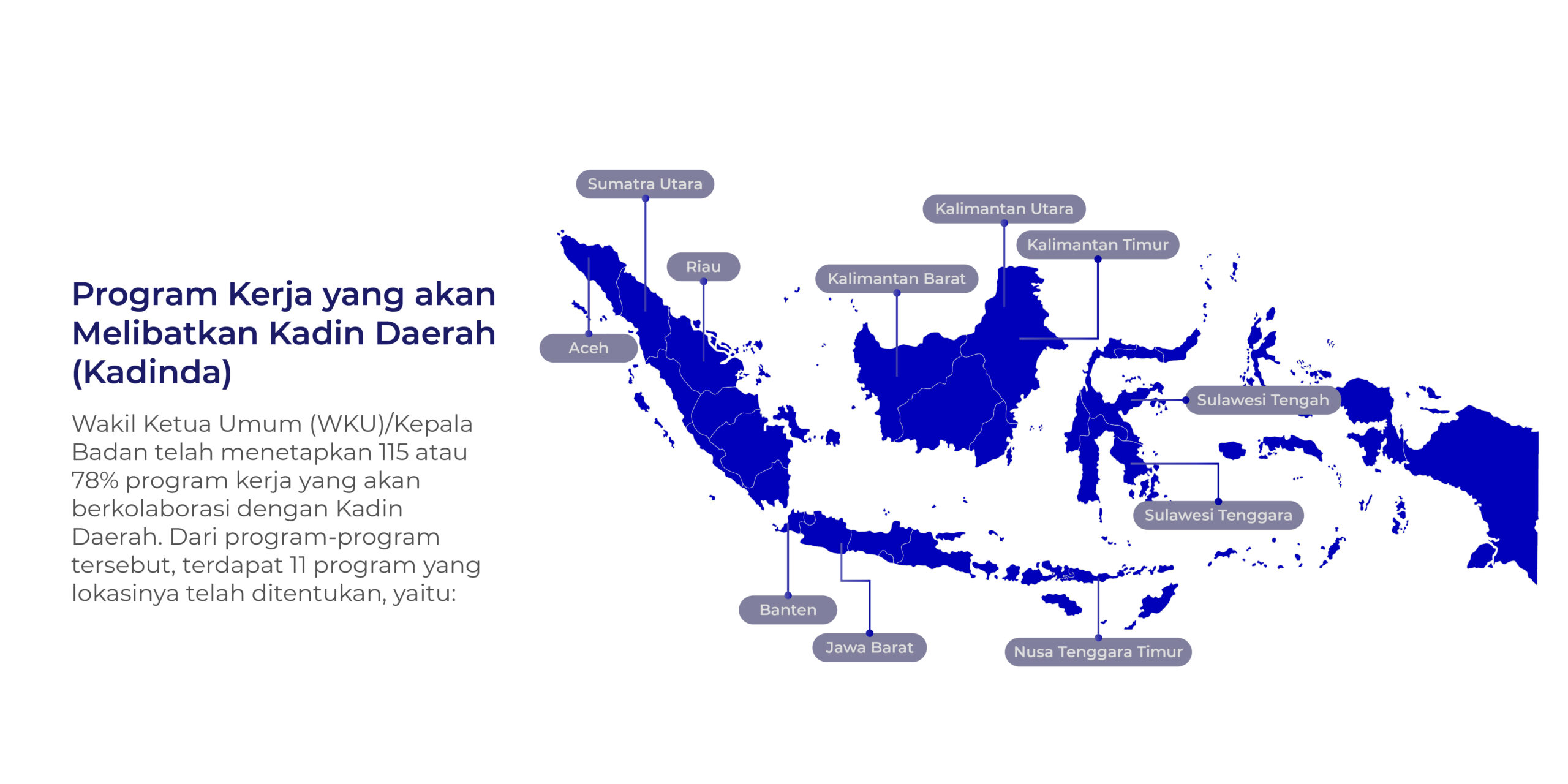 Sesuai dengan mandat Keppres No. 18/2022, Kadin Indonesia merumuskan program kerja yang berfokus pada upaya menjalankan peran strategis sebagai mitra pemerintah dalam meningkatkan perekonomian nasional.